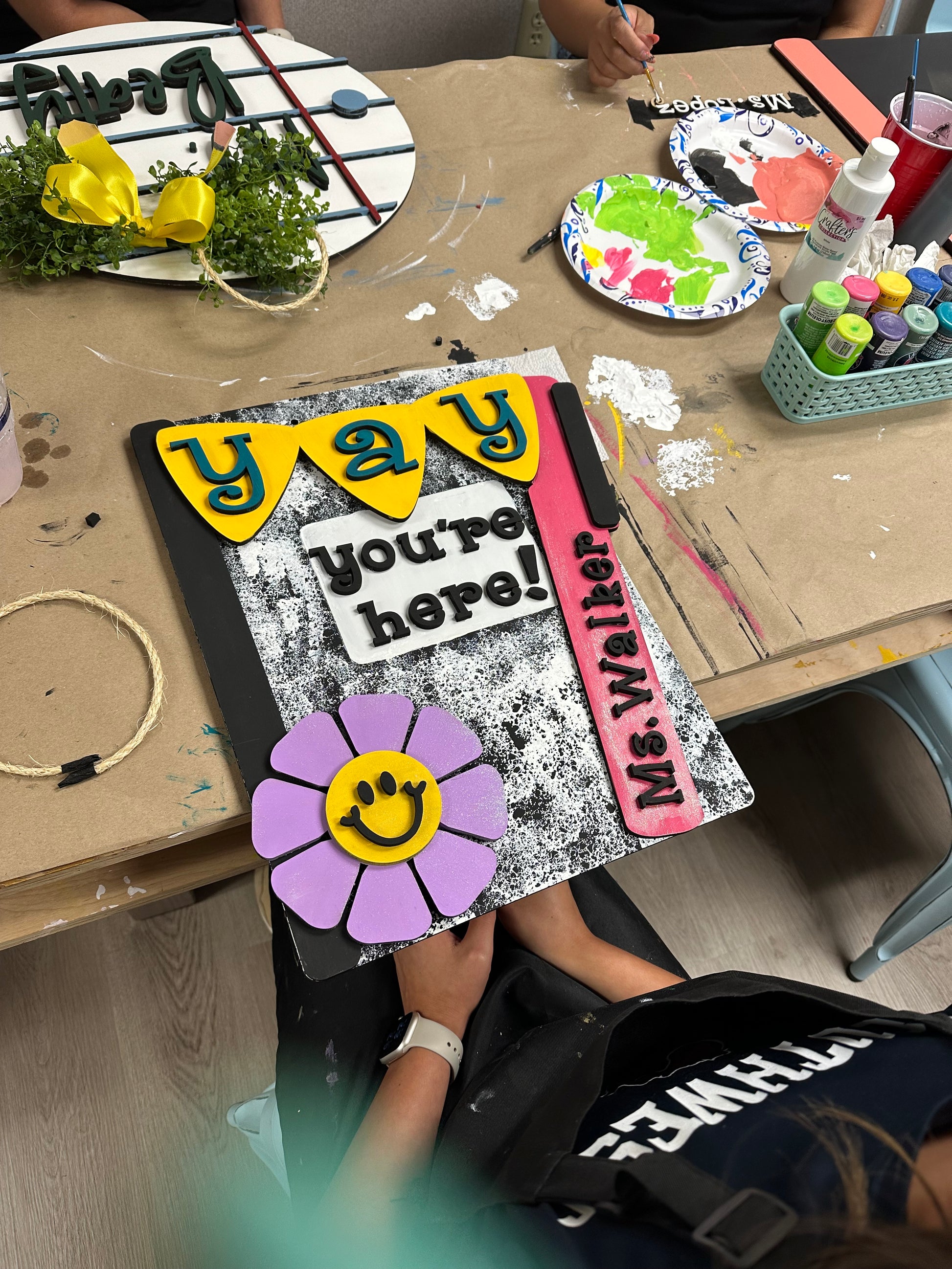 This layered composition notebook sign gives all the back to school vibes. It is so adorably simple and the perfect way to welcome your students to class! Order as a DIY kit, paint in studio, or order a finished sign. 1 size options available: 18" rectangle