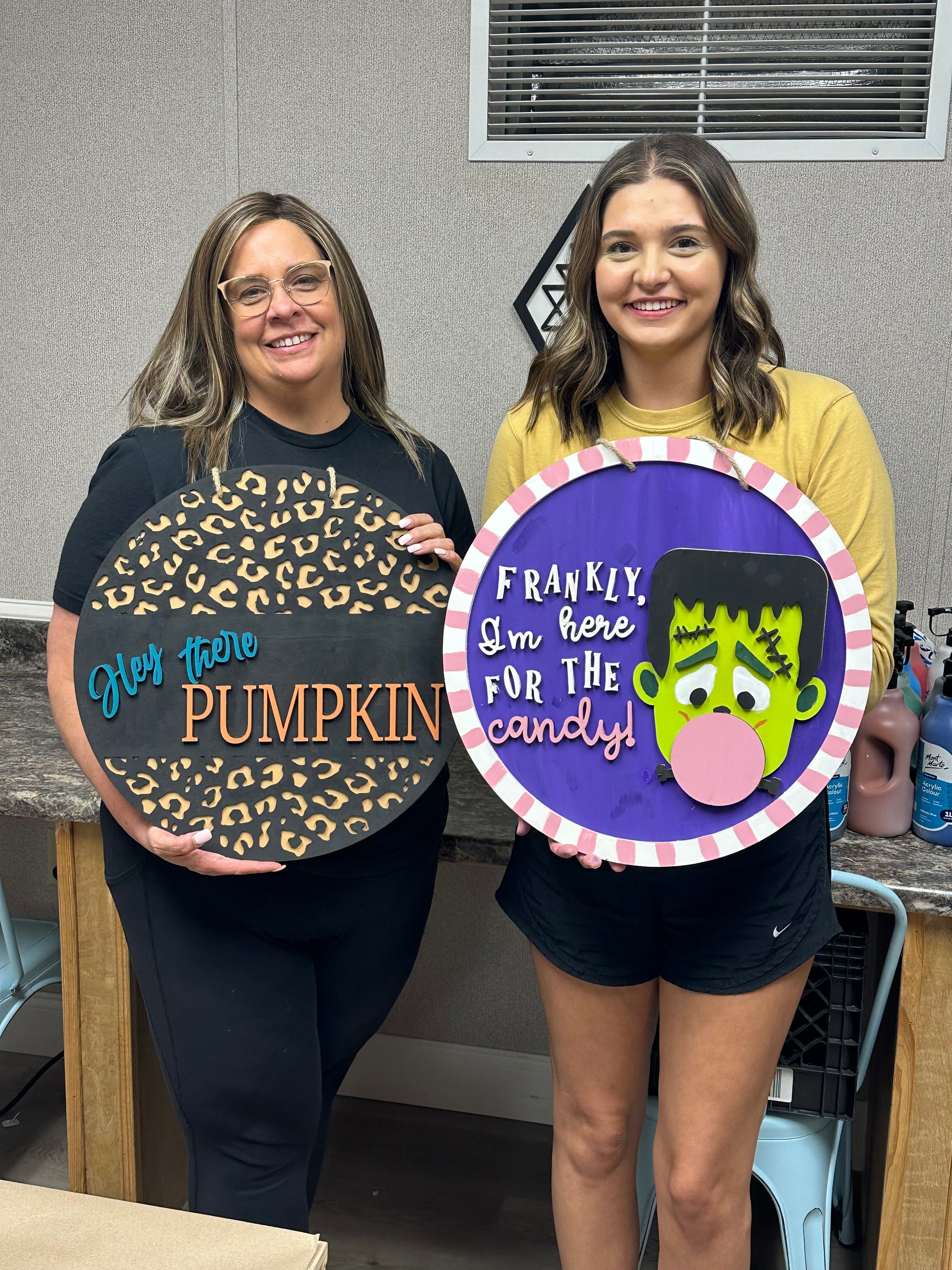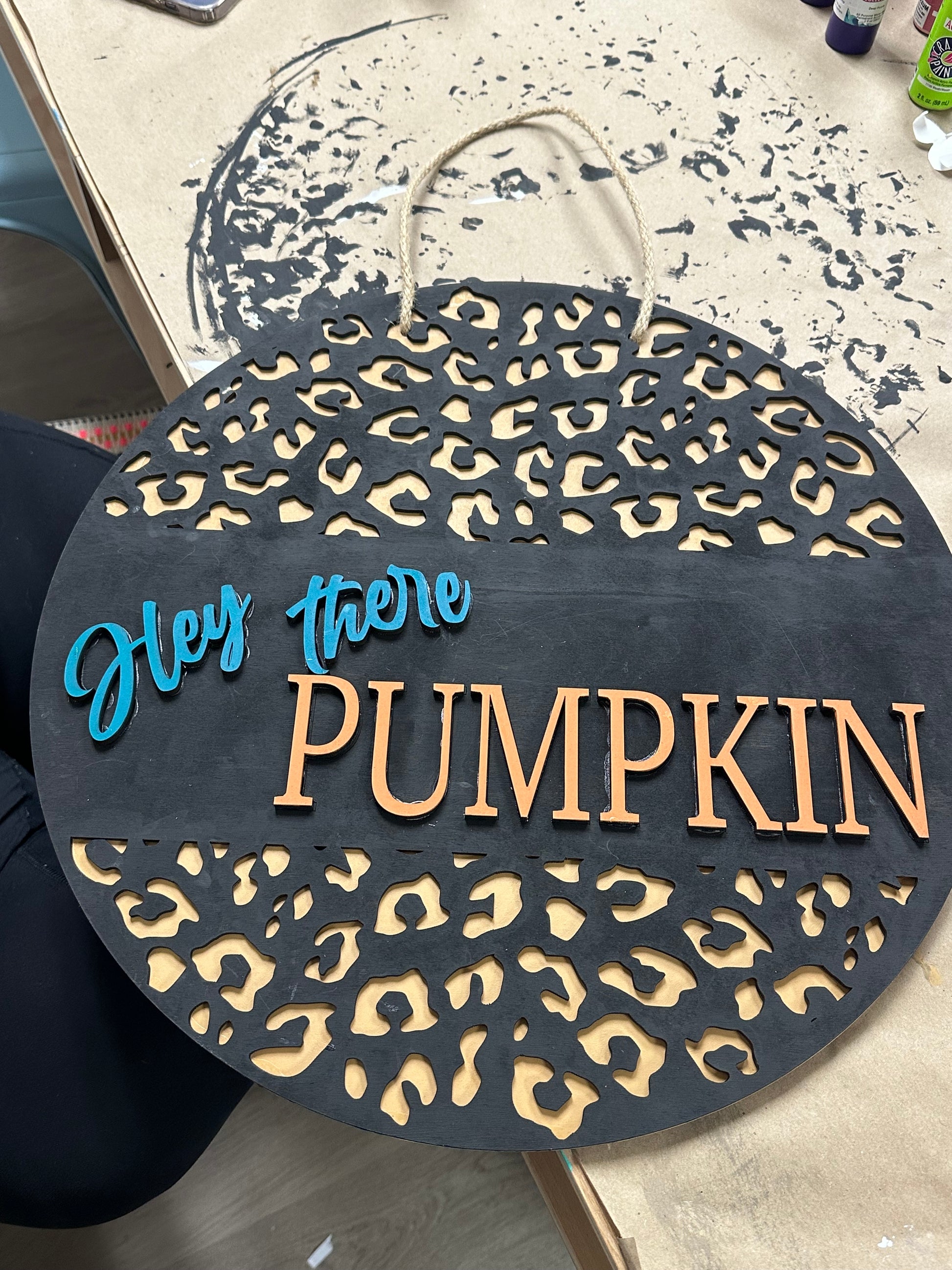 Nothing says, “Heh there, pumpkin,” like…leopard! You know there has to be some leopard with the fall Order as a DIY kit, paint in studio, or order a finished sign. Be sure to specify your greeting or name on this sign prior to checkout. 2 size options available: 18" or 14"