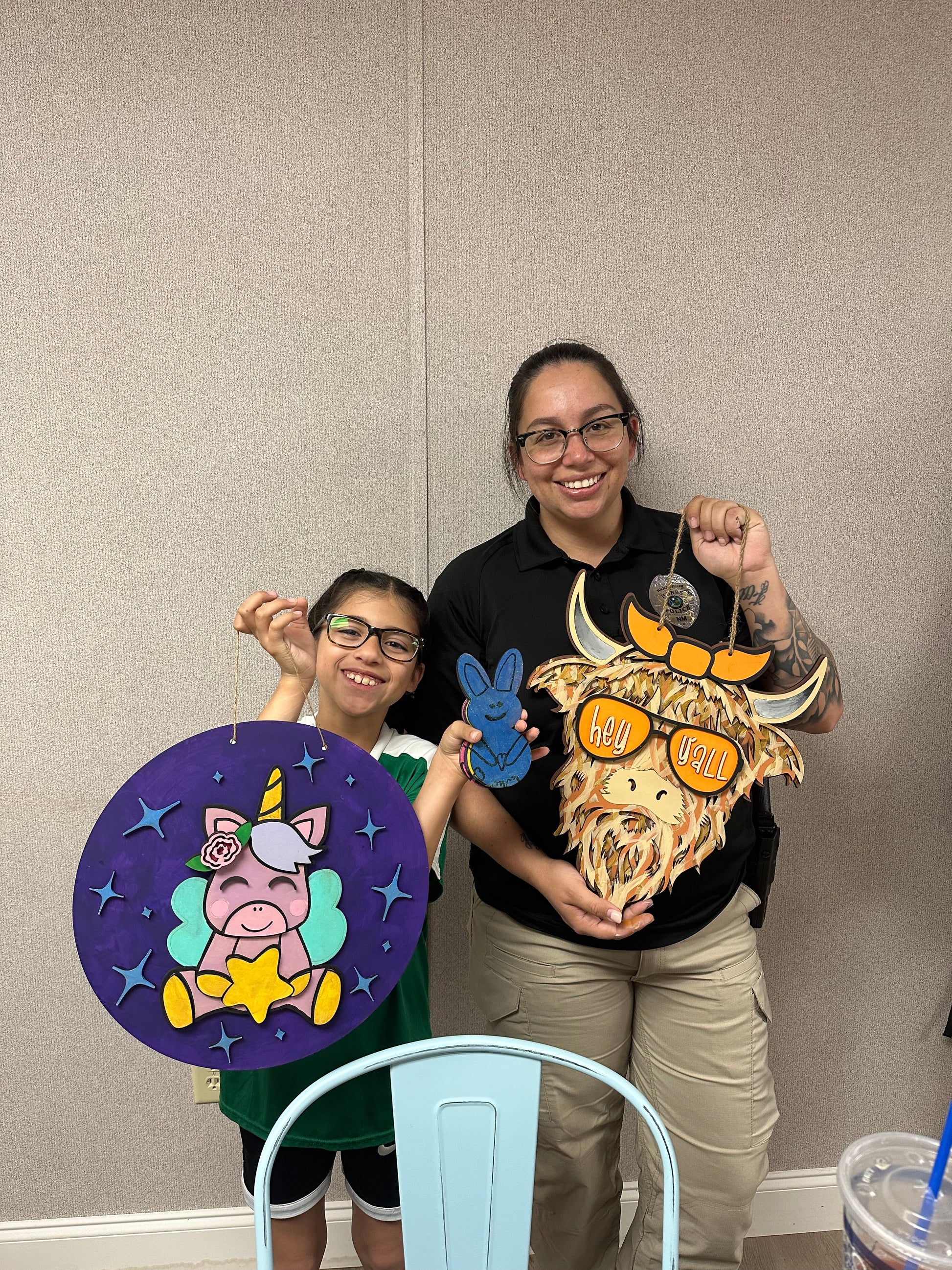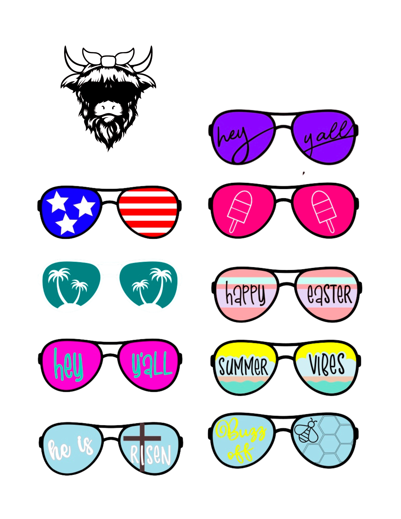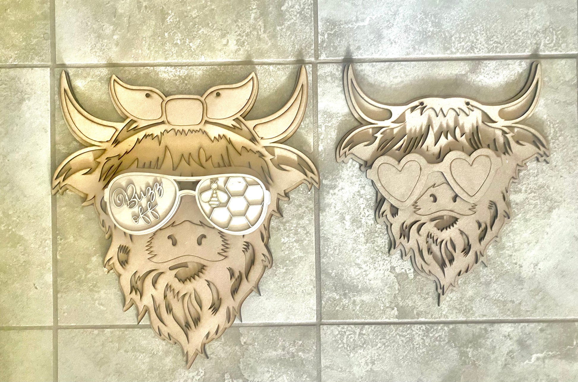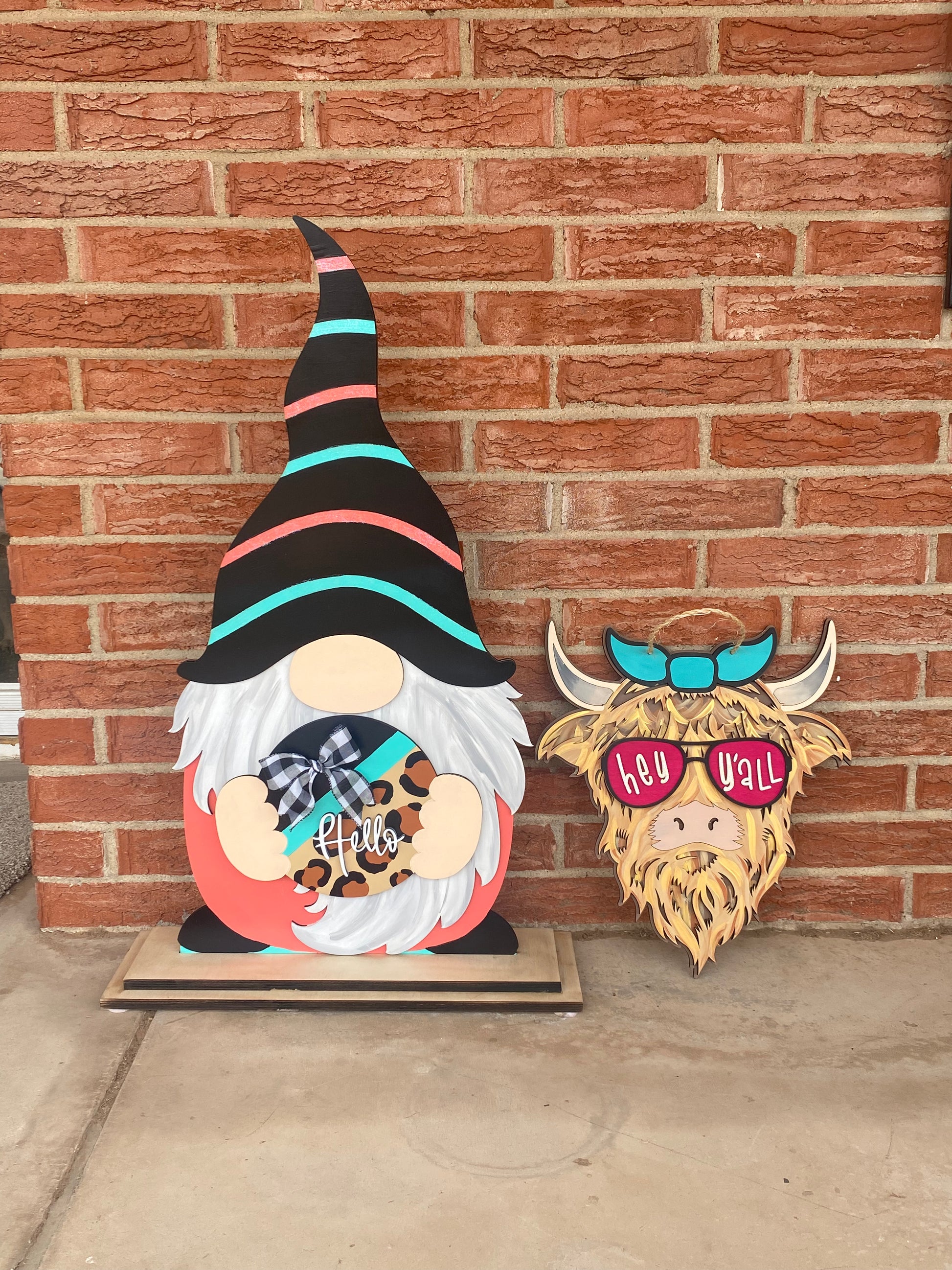This precious highland cow sign can last year round with the interchangeable sunnies. Each cow starter kit includes one pair of blank sunnies and a seasonal pair of sunnies. Order as a DIY kit, paint in studio, or order a finished sign.