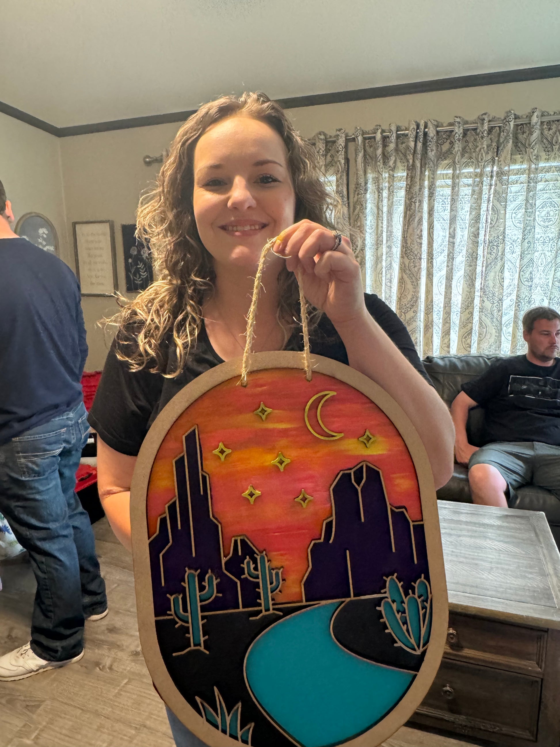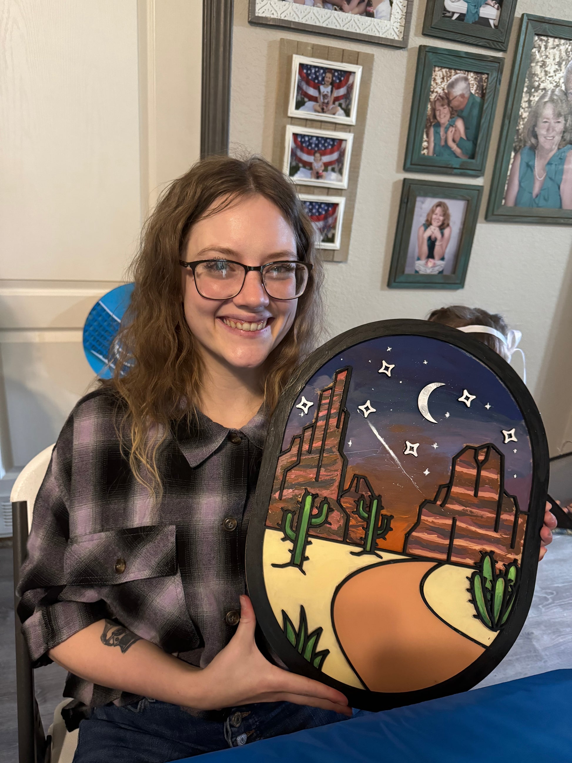 This southwest desert-scape is a beautiful representation of the colors of the desert. Pick you sunset or starry night to make your sign picture perfect!! Order as a DIY kit, paint in studio, or order a finished sign. Be sure to specify your greeting or name on this sign prior to checkout.