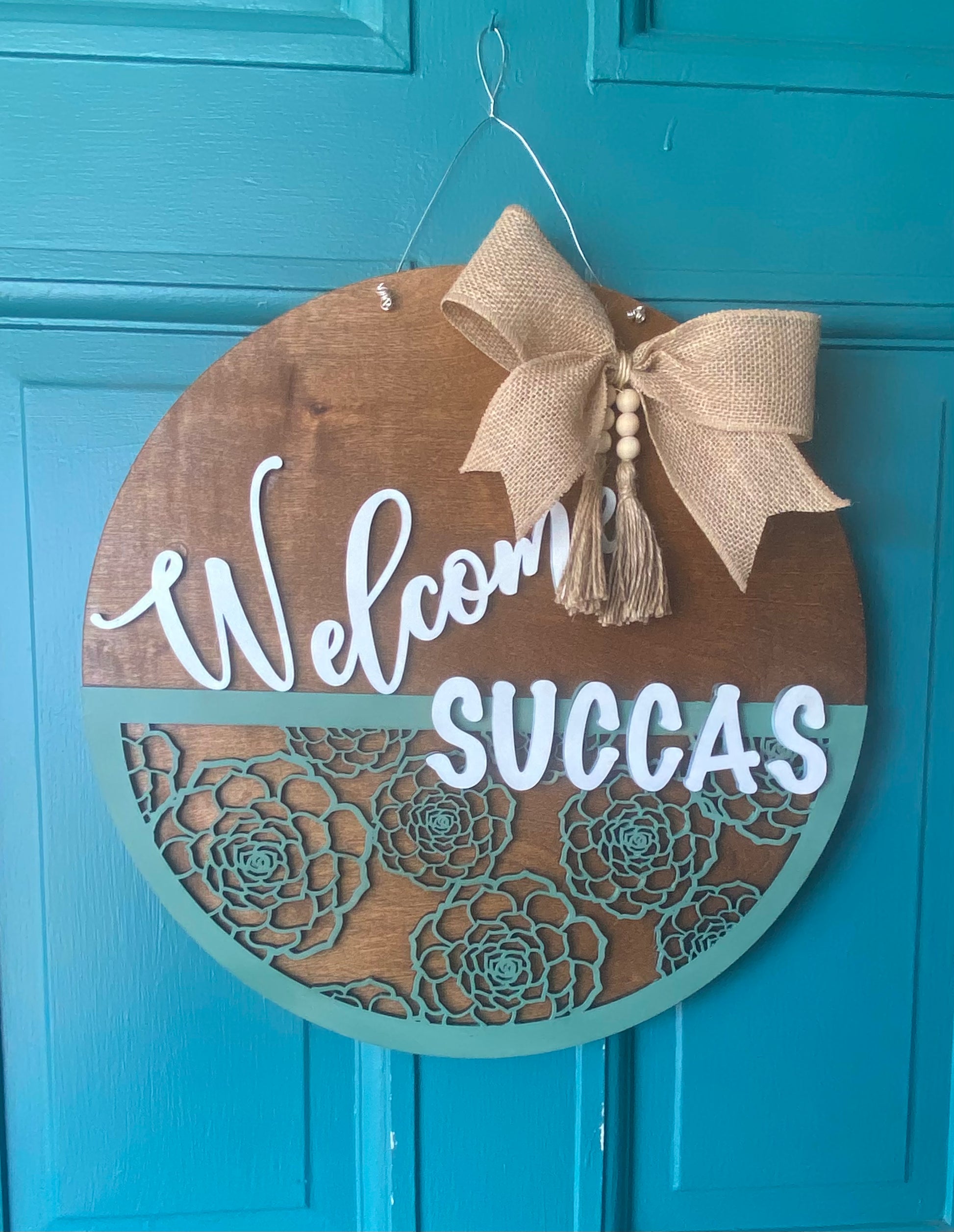 This layered succulent sign is precious! Order as a DIY kit, paint in studio, or order a finished sign.